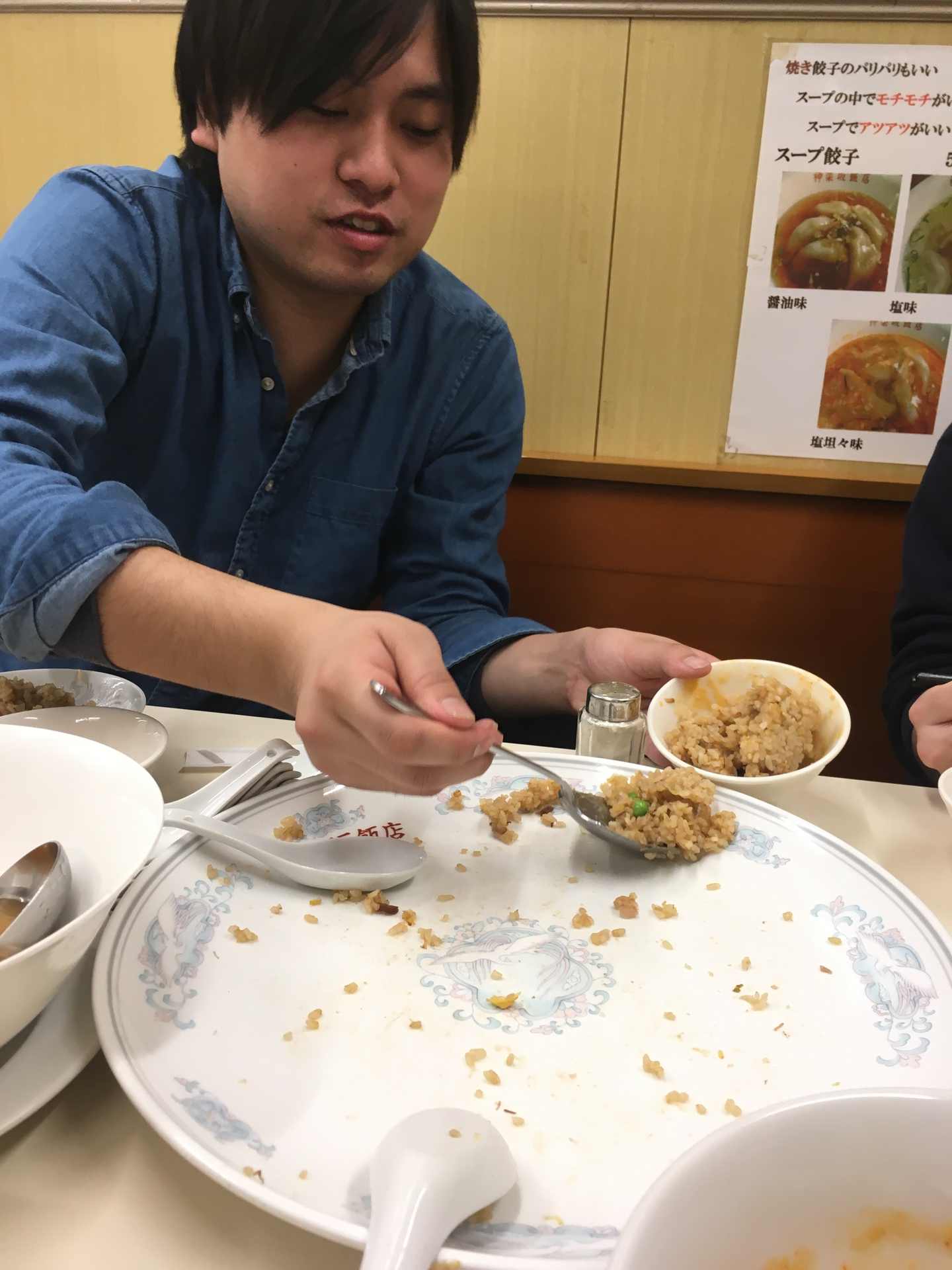 隣にいる岩田さんは、大学時代を宇都宮で過ごしただけあり餃子が大好きなようで、ずっと餃子を食べています。