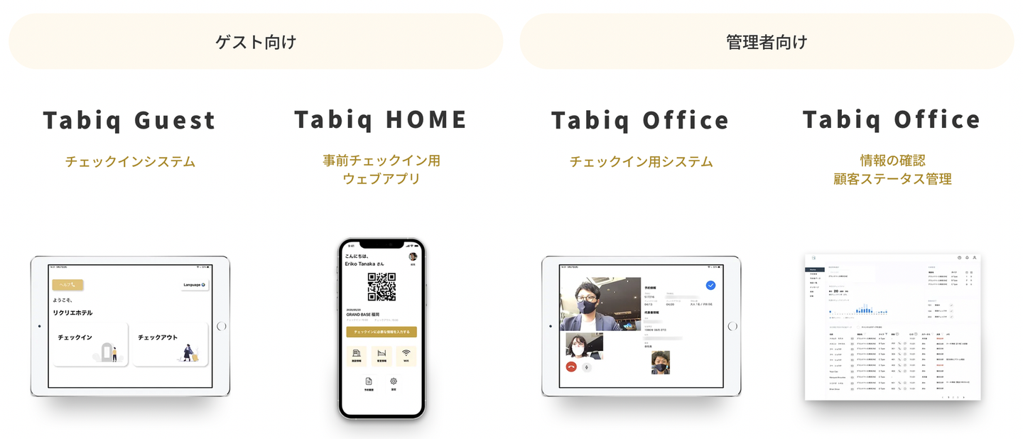 現在は、ゲスト向けのチェックインシステムだけではなく、Webアプリ、また管理者向けのシステムも開発・提供しています。