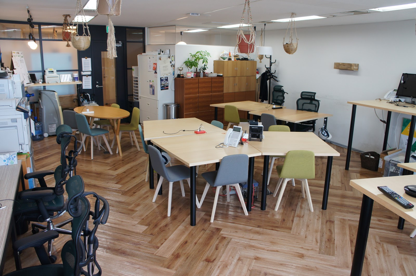 初めての改装は2016年4月。コーポレートカラーのグリーン、床、机はオーク材を取り入れ、雰囲気がガラッと変わりました。