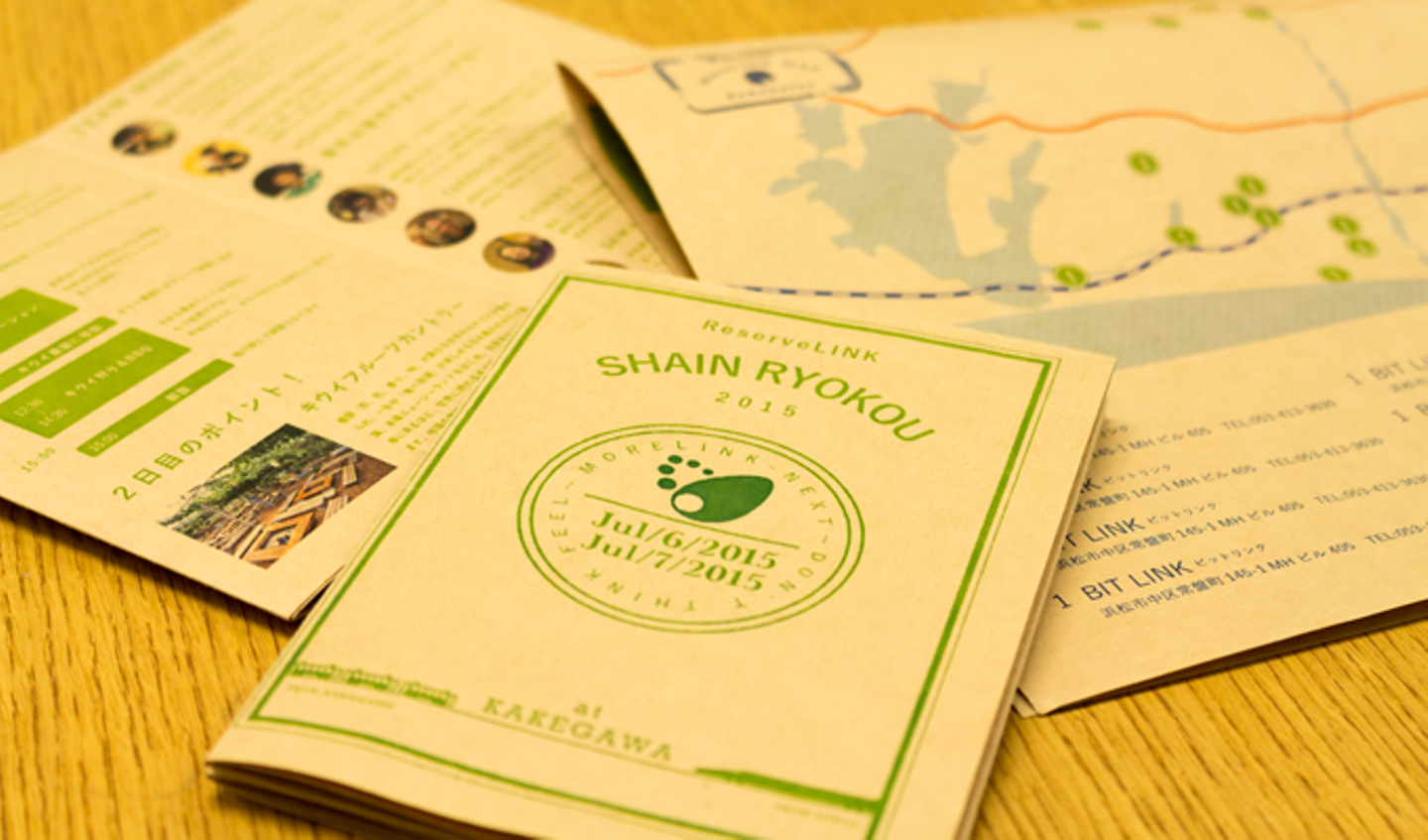 社員旅行は行く前から楽しむべし、旅のしおりはTeam MoreLINK総監督を務めるデザイナー・よっしーが紙から厳選し制作。日程・部屋割りはもちろん、しおり班が収集した地元ならではのディープな近隣情報もてんこ盛り。同じ時間、同じ場所で体験することでしか語れないことがきっとあるハズ。旅のテーマは「Don’t think.FEEL」