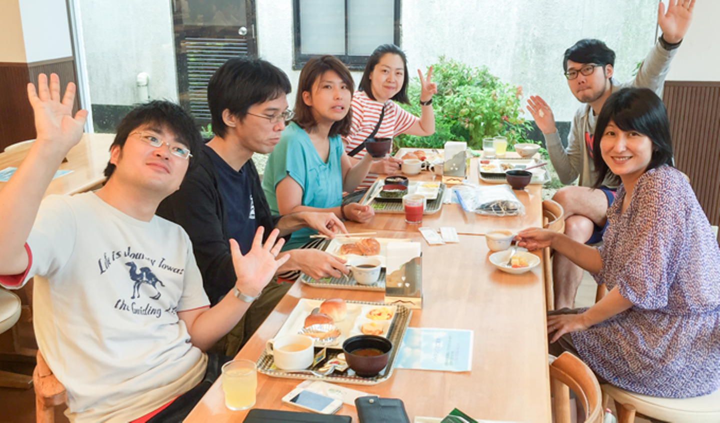 今日のスケジュールと各自の役割を再確認をしながら、Team MoreLINKメンバーは揃って朝食。1日目に用意したイベントやサプライズはみんなに楽しんでもらえたよね!?今日もみんなの笑顔を目指して踏ん張ります。旅行後のアンケート結果が楽しみ。