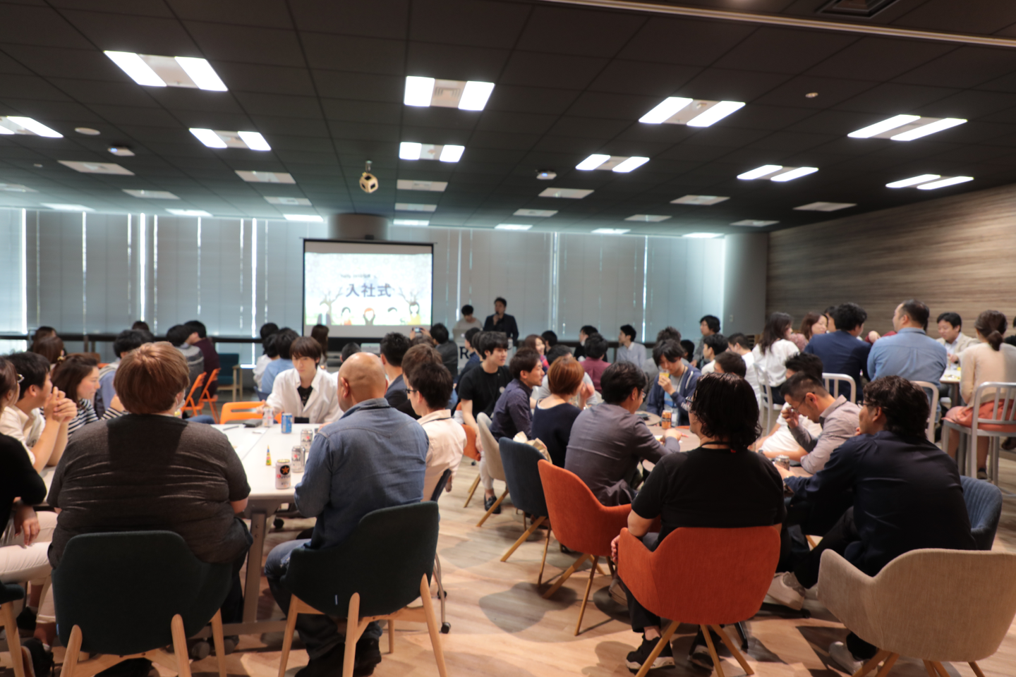 代表の武田からの挨拶と執行役員の安東から激励と乾杯があり、全社員が新しく入ってきてくれたメンバーと交流を深めていました。
