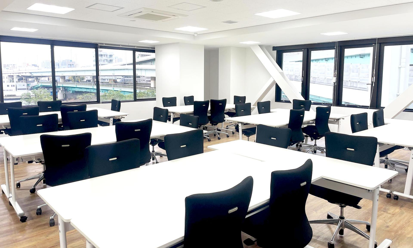 出社して研修を受ける場合は、リゾーム本社の研修会場にて受講します。オンラインの場合は各自、自宅から受講します。1人だけ出社、残りはオンラインというケースはなく、全員一緒の受講スタイルです。