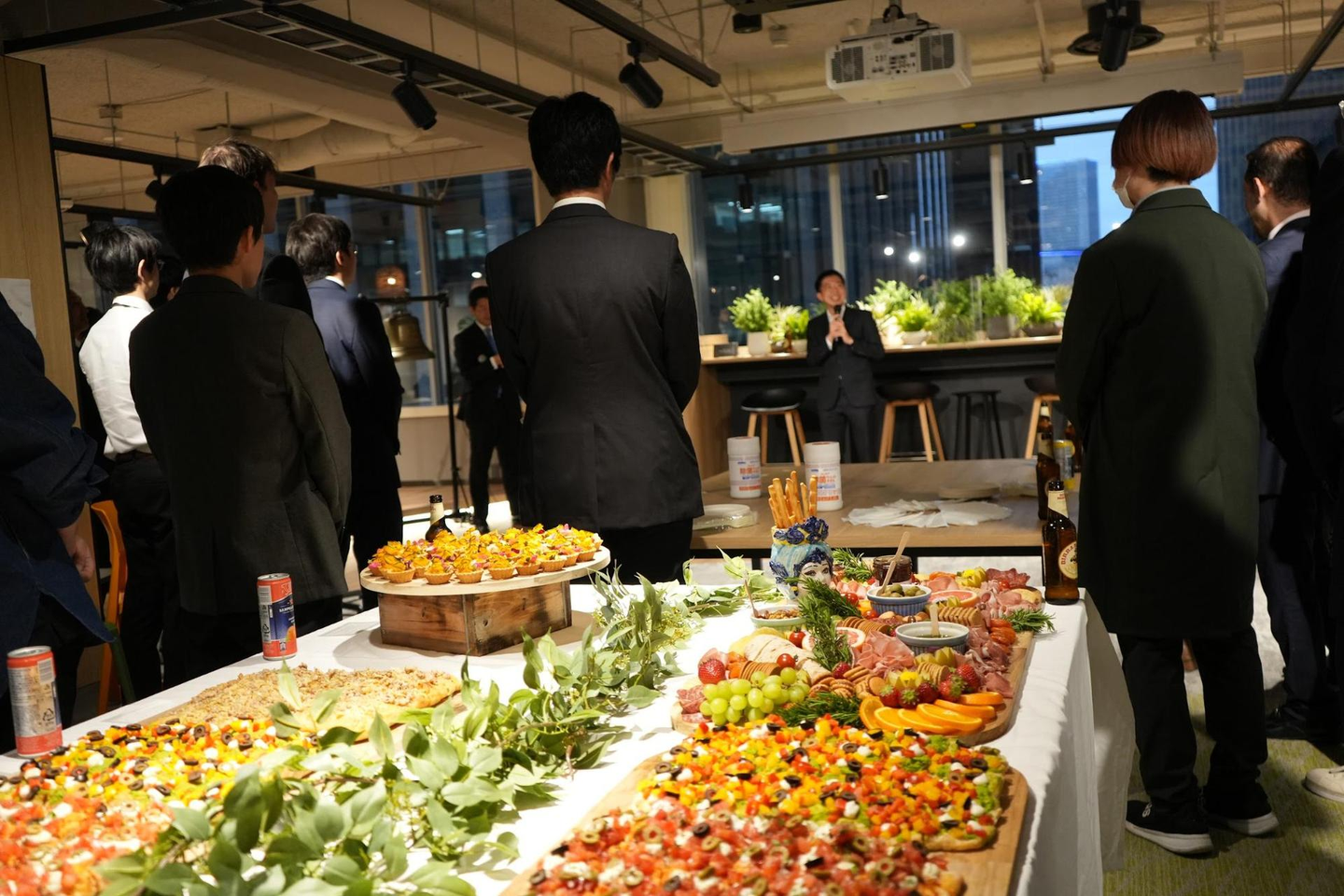 オフィスがある大手町ビルディング7階のラウンジをお借りして上場記念パーティーが開催されました。