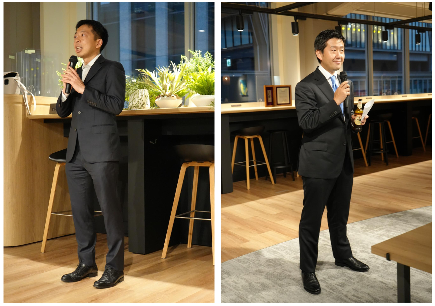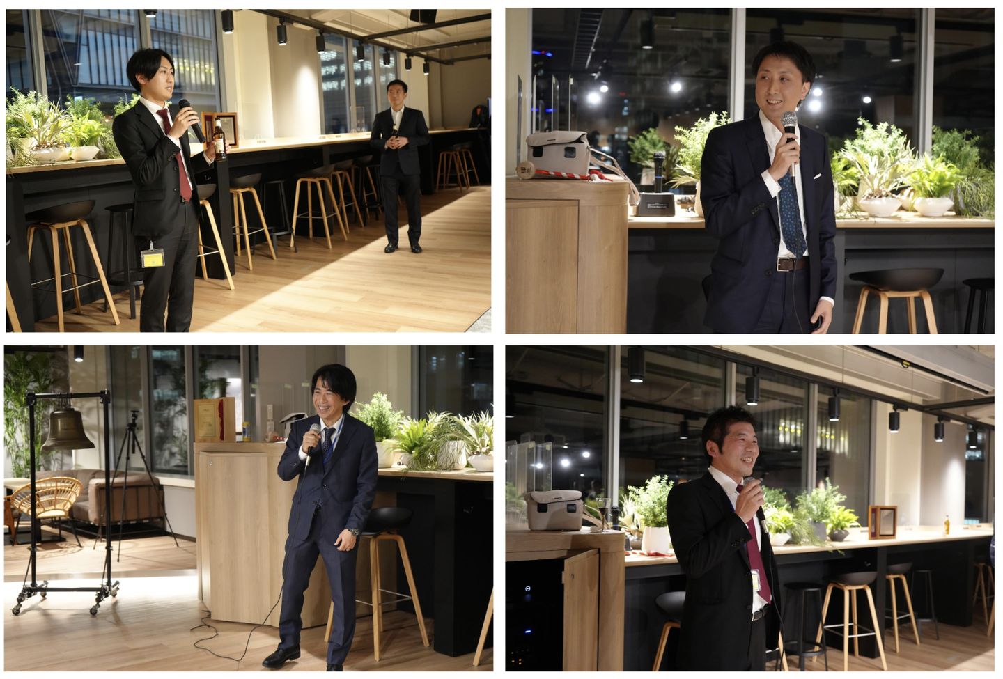 その後、会社のあらゆる責任を担っていた市來、この上場に向けて圧倒的な推進力を発揮した中井、コアな登山家にしか伝わらない例えで会場を沸かせる横山から挨拶がありました。どれも素敵な言葉で、笑いそして感動しました。