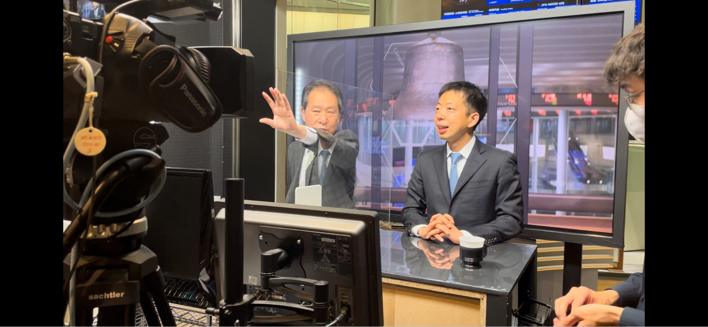 セレモニーでは、柳原が「上場通知書」を受け取り、チッカーに「祝上場 株式会社Ridge-i」と表示されると拍手と歓声が起こりました。