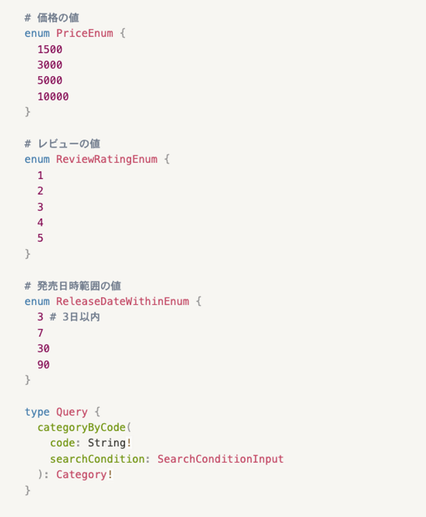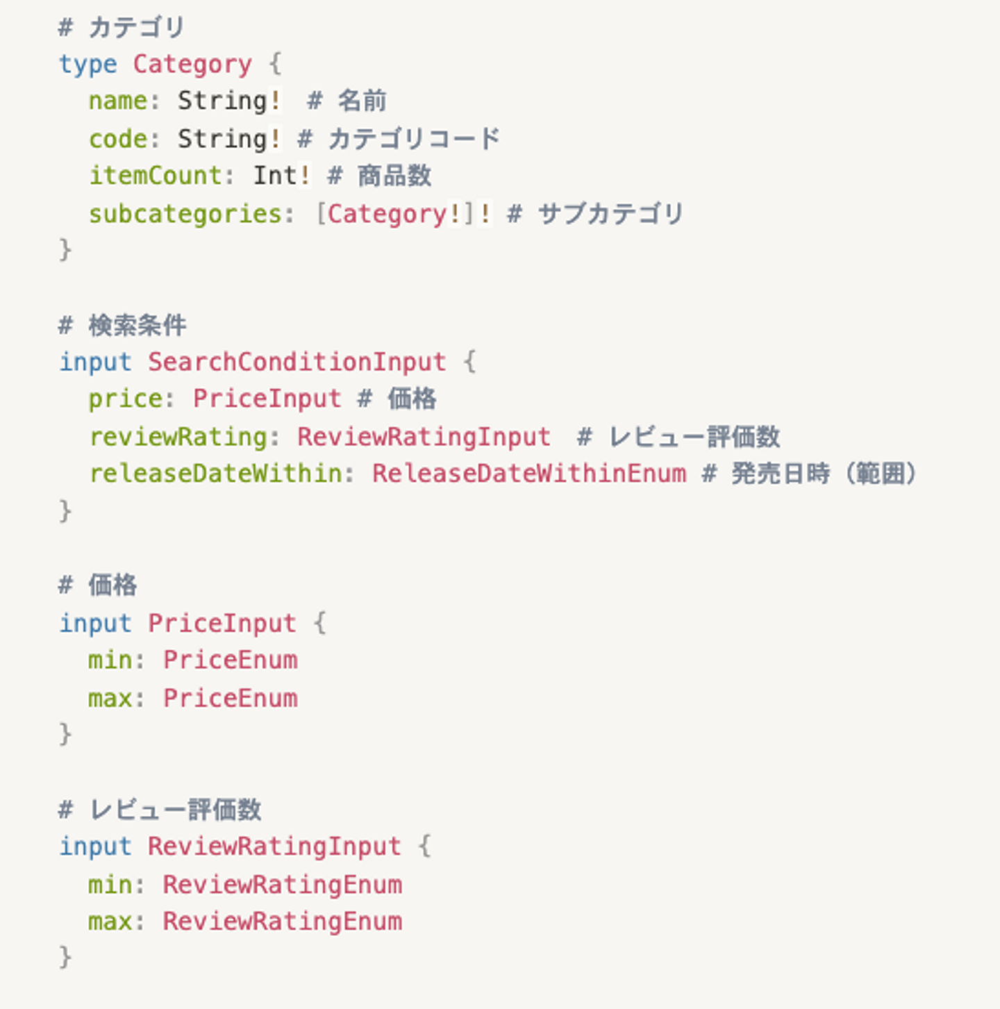上記の内容だけではよくわからないかと思いますので、実際に上記の値を含めたスキーマを定義し、起こった問題と解決した方法をご紹介させていただきます。