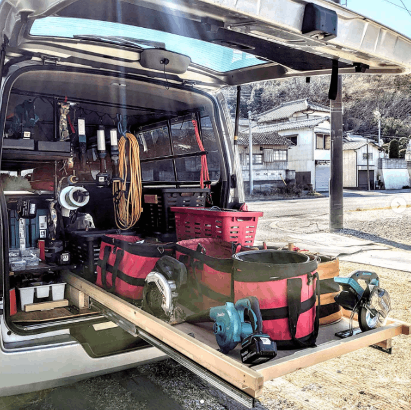 職人さんの工具を入れるのに適しているものは何か?当時、いわゆるボックス型の工具箱しかラインナップを持っていなかったリングスターは、次の収納ボックスの可能性を考え、知人の職人さんにヒアリングし、街中で開いている職人さんの車を注意深く観察していると、ある事に気が付きます。