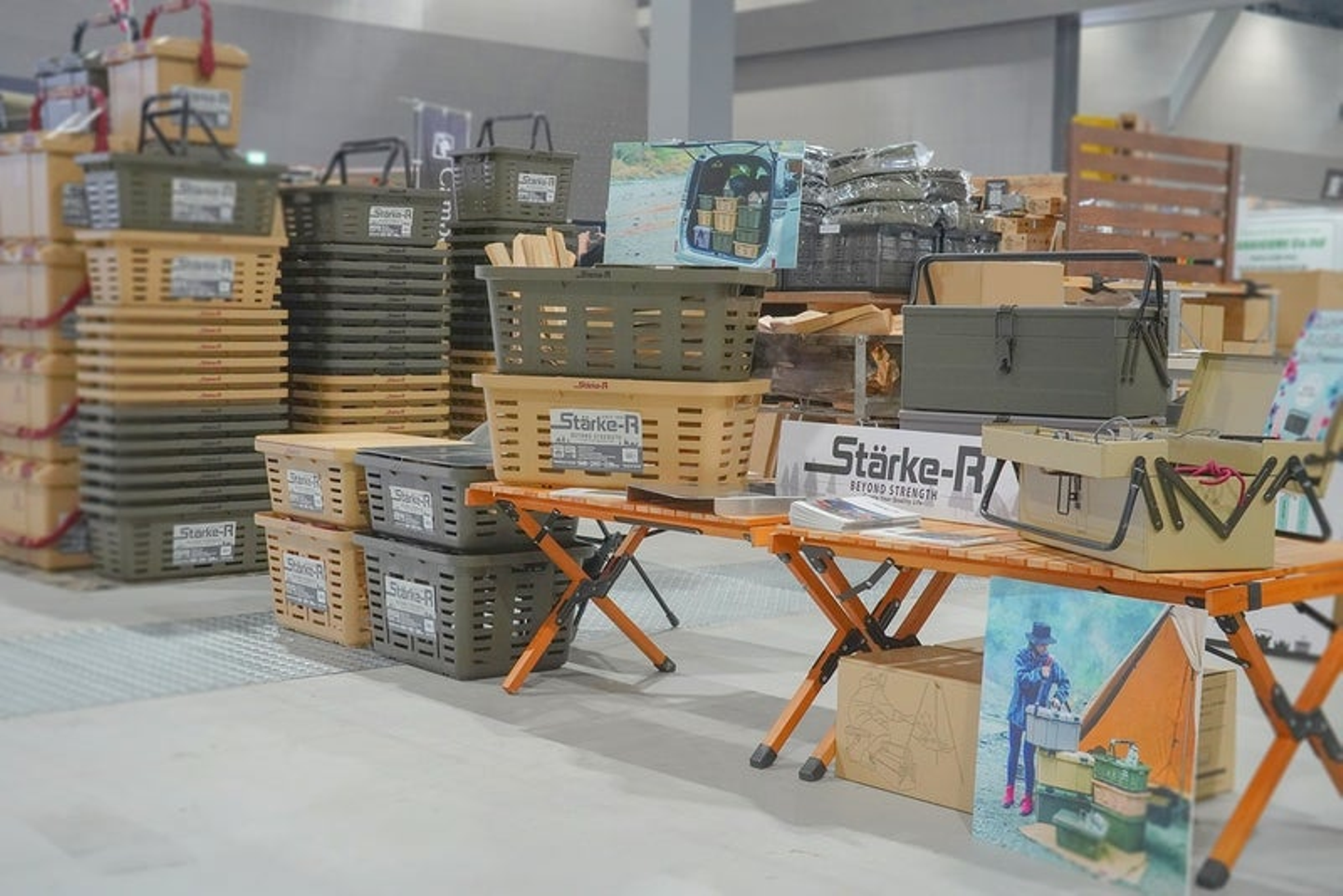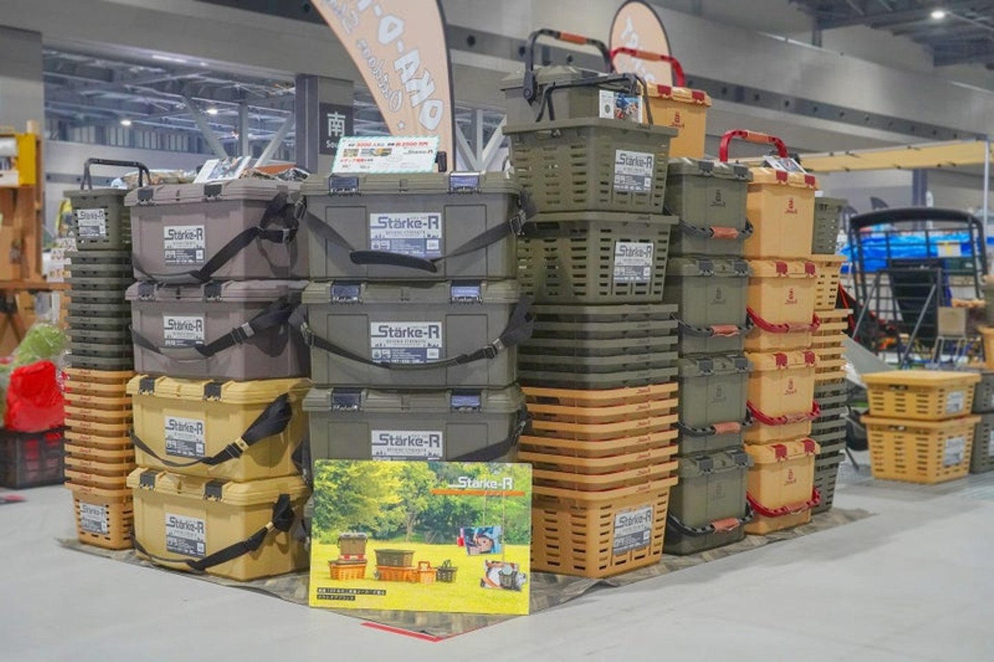 弊社製品の1番の推しポイントは、なんといってもタフなところ。たくさん積み上げても一切ぐらぐらしたり不安定になることはなく、これだけで製品の安心感が伝わったのではないかと思います。スタッキングできるという製品の特性上も合わさって、1つ1つ置くよりも複数個まとめて置いたことで、かなりの迫力が出ました。他のブースに比べて製品数は少ないですが、その分積み上げで陳列面(フェイス)を増やしたことが効果的だったのだと思っています。