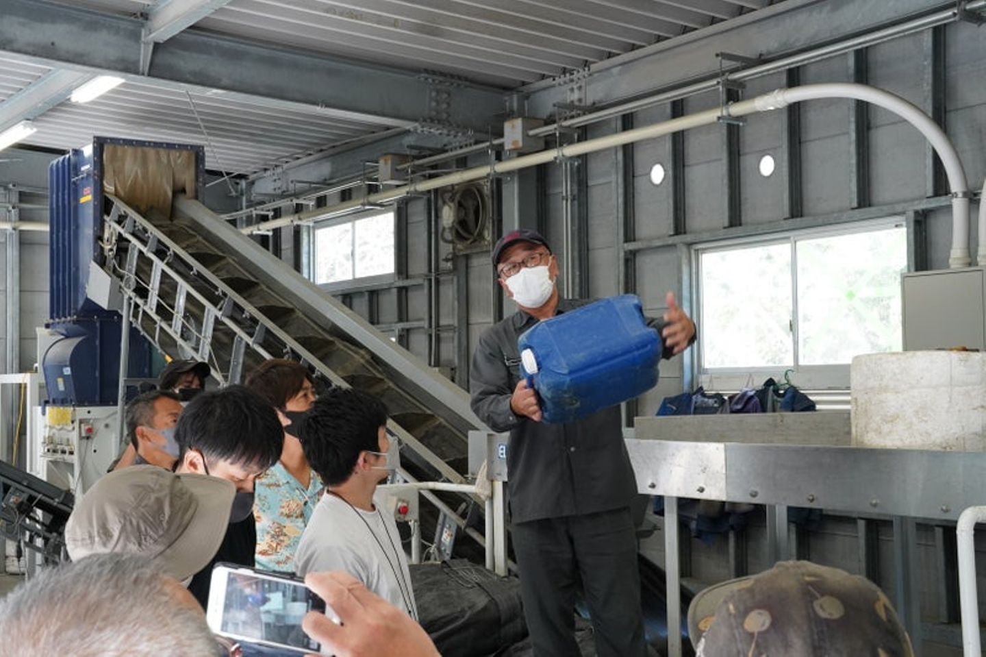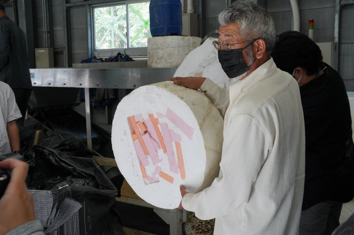 私もプラスチック工具箱メーカーの端くれ、海洋プラスチック問題も危惧しており、SDGS、企業のESG投資、バイオマス等の再生プラスチックの技術発展については日々注視し、勉強しております。その投稿に海洋プラスチックを粉砕してペレット状にした画像を見て、素材や工程面への疑問とプラスチックメーカーとしての知見を共有し、意見交換する為に桑原さんに弊社にご足労いただき、生産工場での工程、想いや背景を共有した上で、後日今回のツアーにお誘いいただいた事が本ツアーの経緯になります。