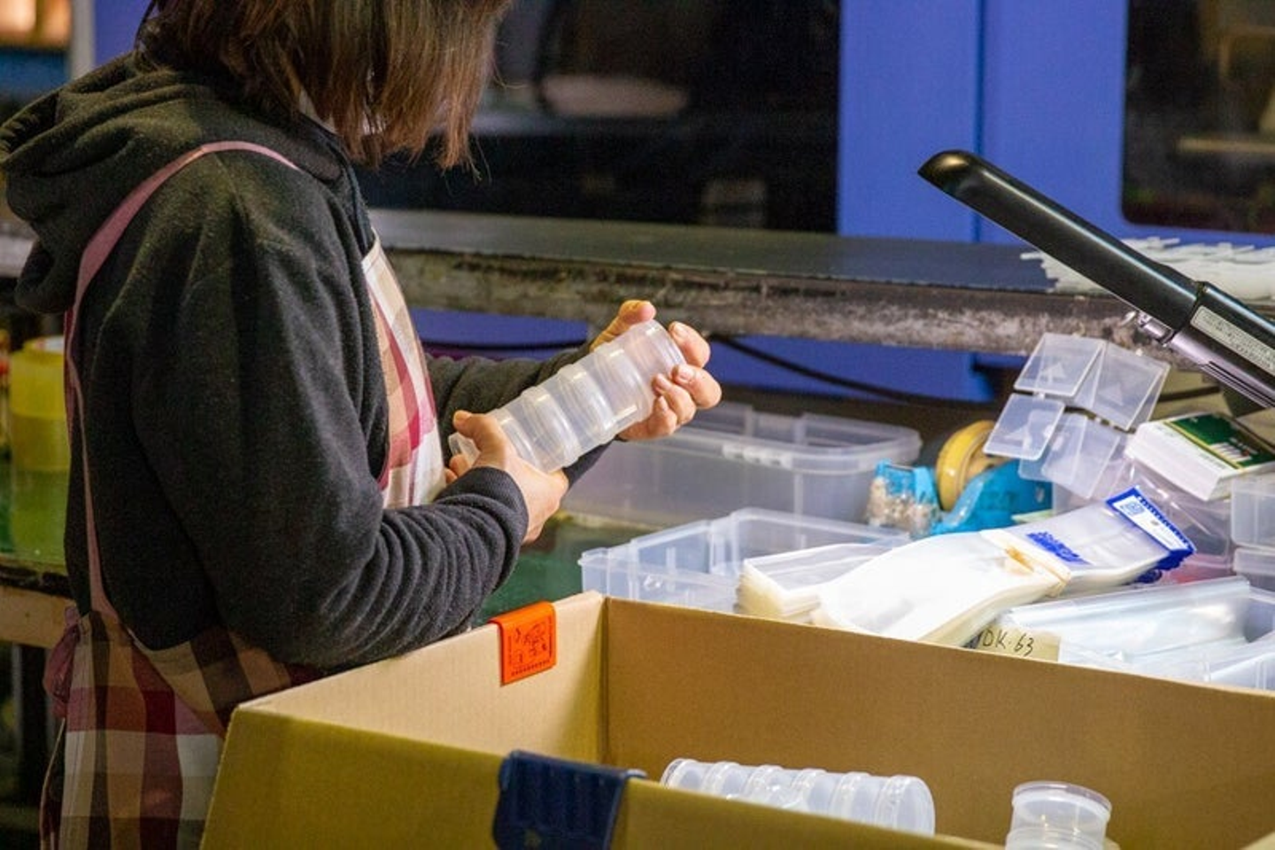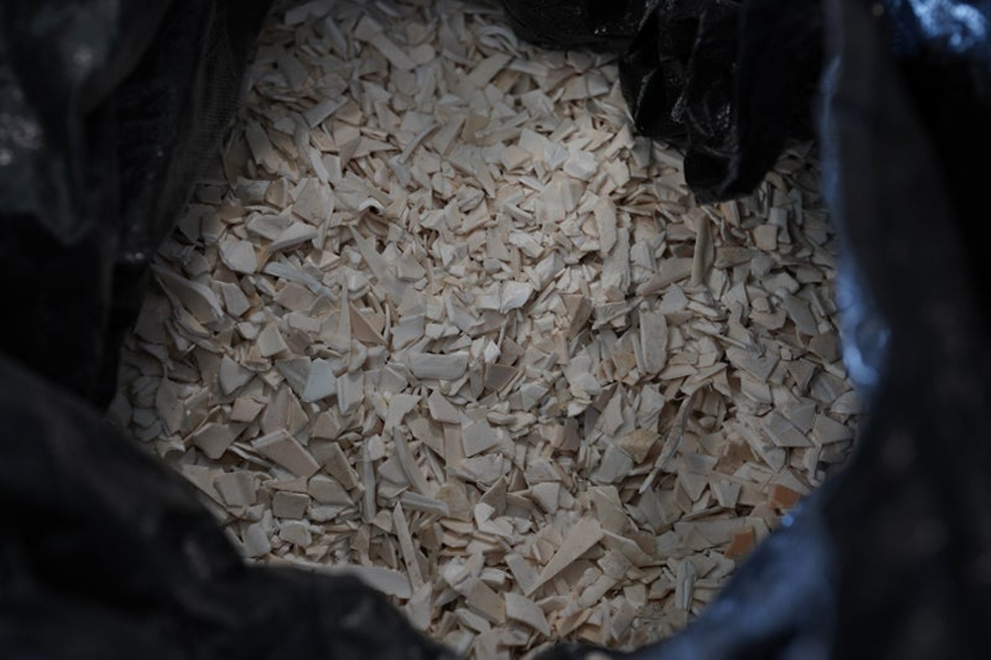 ここでは、海域で集めたプラスチックを分解、保管(納品できる企業を探す)していました。私も自社の工場にて6年従事しましたが、この工程はとても大変です。例えば製品に油がついておれば、成形の品質上、綺麗に拭き取る、またはその部分だけを切り取るなどの作業が発生します。