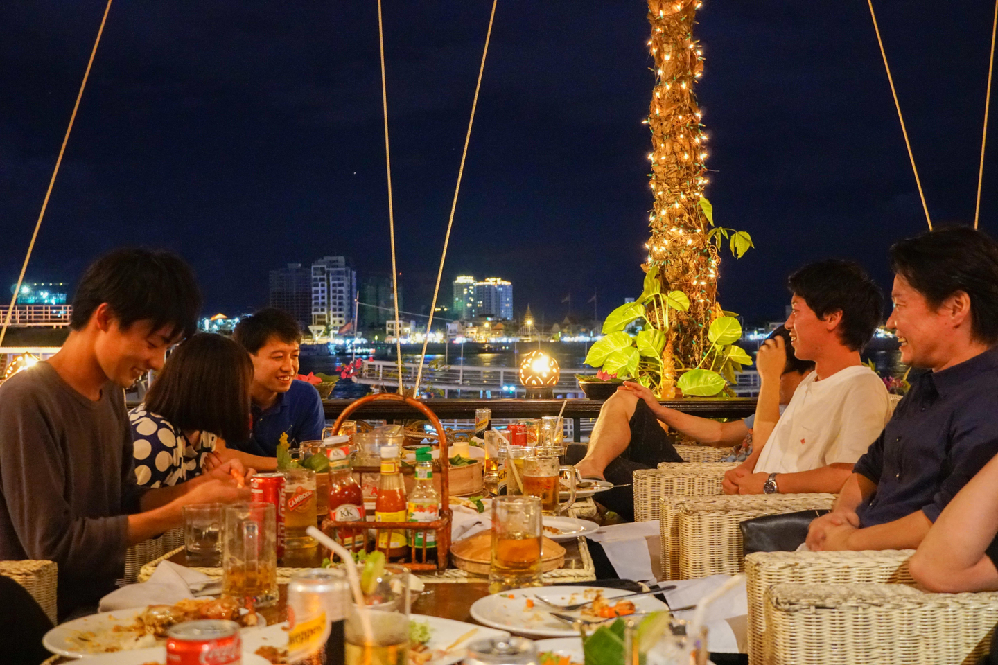 伝統的なクメール料理のレストランで、カンボジアを体感しながら、「As-is,To-be」も語っていただき、チームとして士気を高めていました。