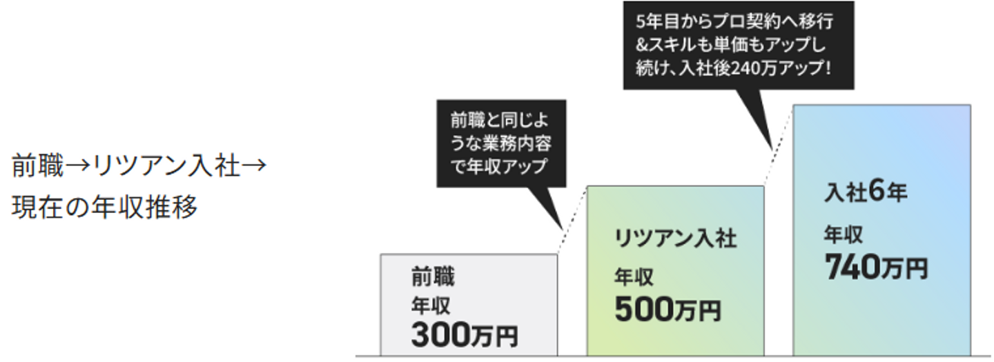 新卒同然からスタートし、年収で成長をしっかり実感。