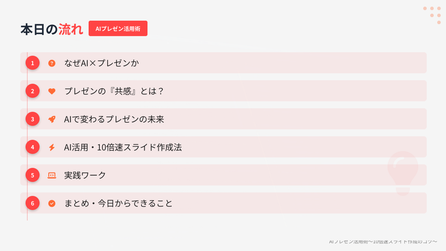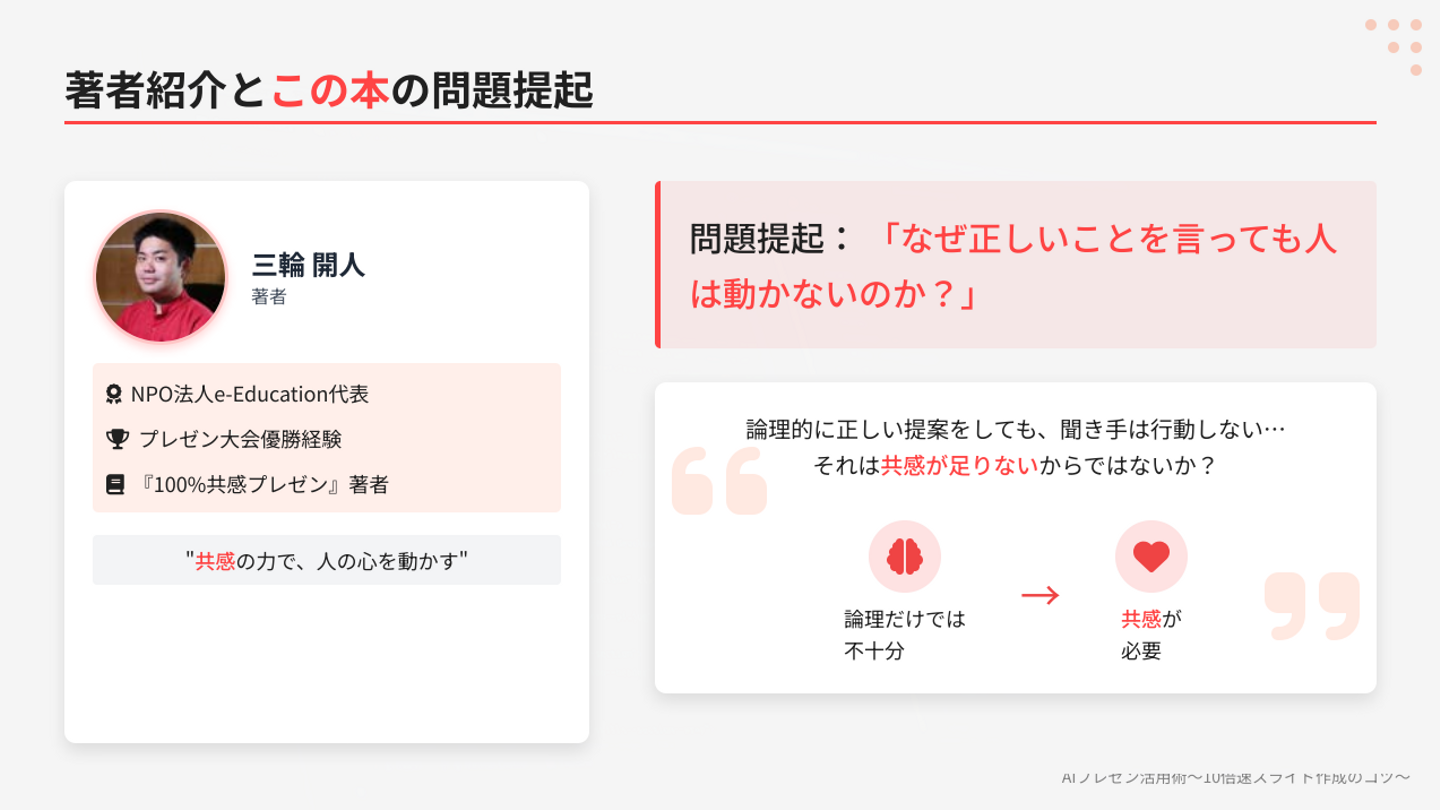 - 即席添削セッション:参加者が用意したスライドをその場でAI+三輪さんが改善