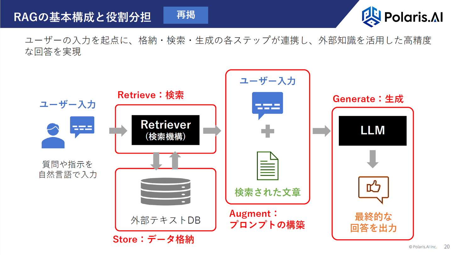 今回は、前回に引き続き「RAG(検索拡張生成)」をテーマに、実務レベルでの“精度向上”に特化した内容で展開。RAGを導入したものの「正確な答えが返ってこない」「現場で使いにくい」といった課題に直面した時、どのような思考プロセスと改善ステップが必要なのか——その“再現可能なアプローチ”を学ぶ90分となりました。