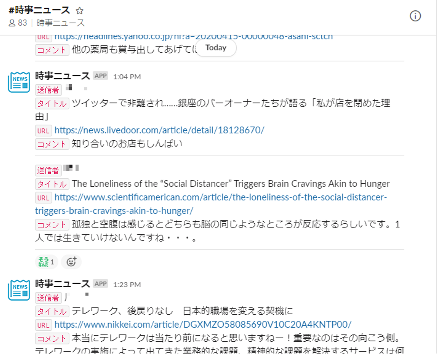 以下のようにそれぞれが発信したニュースを一覧で確認できるようにしておりまして、