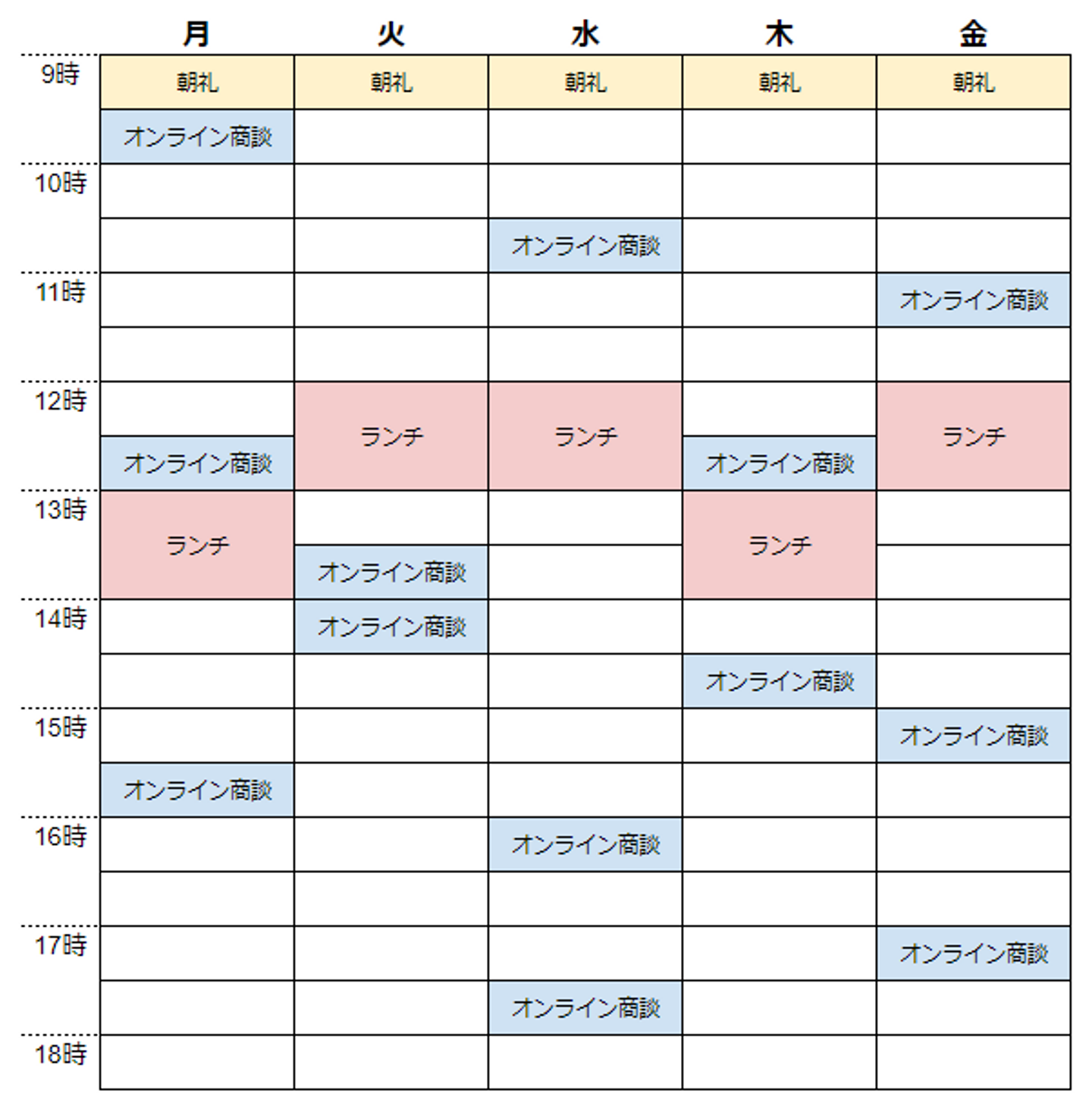 こちらは、あくまで例ですが、入社4か月時点での自分の1週間の流れになります!