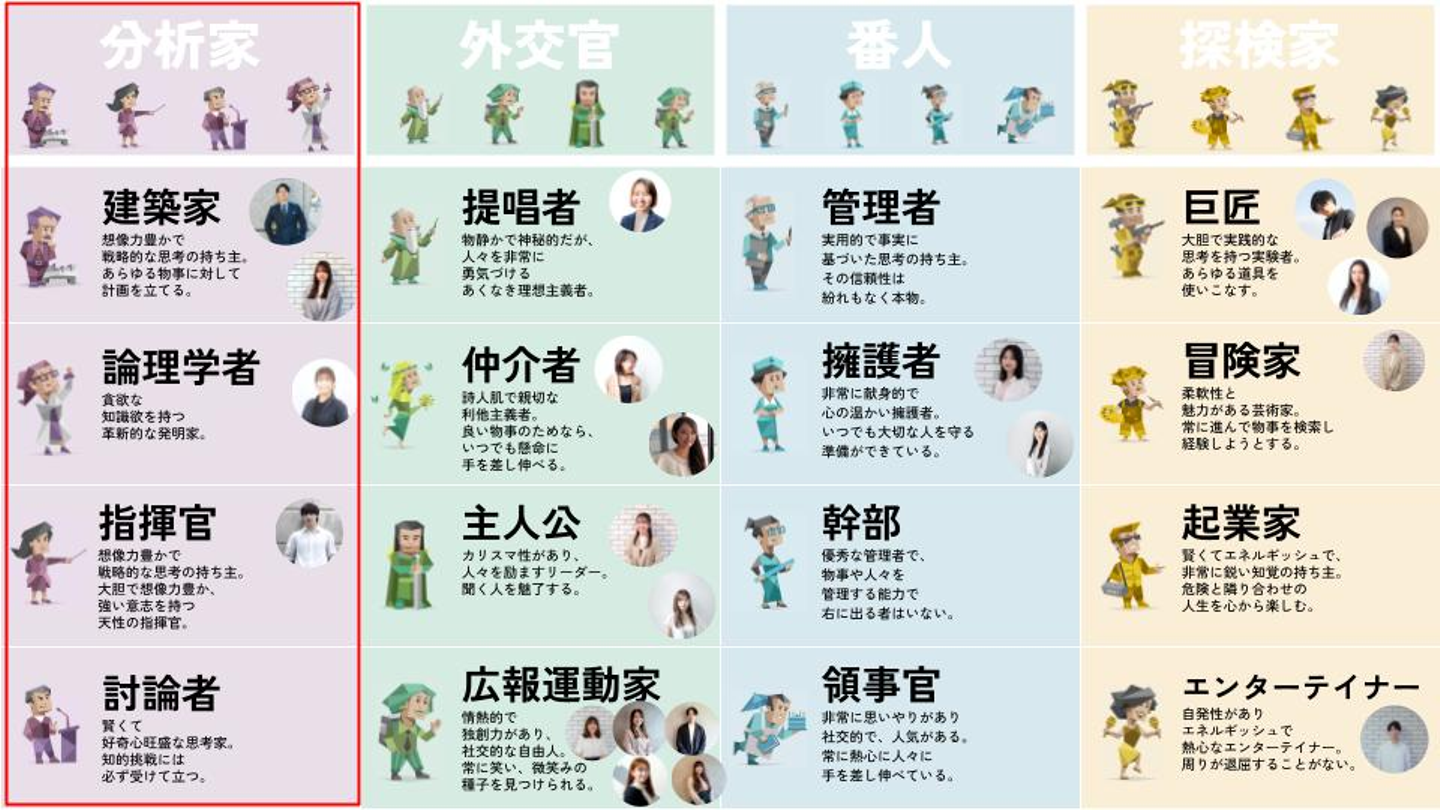 外交官や探検家がチームを盛り上げ、動かすとすれば、分析家タイプ(INTJ・ENTJ・INTP)は“思考と構造”でチームの芯をつくる存在。それぞれスタイルは違っても、共通するのは「感覚より構造」「勢いより思考」で物事を捉える冷静さです。