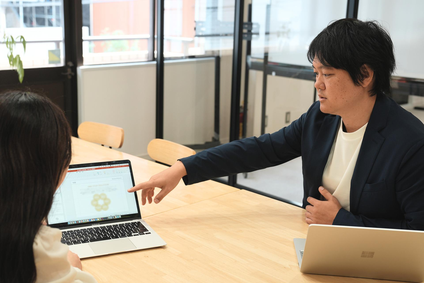 必要に応じて案件を一緒に進め、プレイヤーとしての姿を見せつつ、思考のプロセスや判断基準を伝えるようにしています。私自身、 プレイヤーとしての姿を間近で見せてくれる上司のもとでは、特にスピード感を持って成長できたという実感を持っているからです。例えば思考のプロセスやトラブルの対処法、仕事に向き合う姿勢などは、言葉で指示を受けるだけより、上司の動きも併せて見る方が吸収しやすく、自身のパフォーマンス向上につながりました。実際に実演的な方法で指導することで、これまで指導してきたメンバーは全員成長スピードが早く、着実に成長しています。