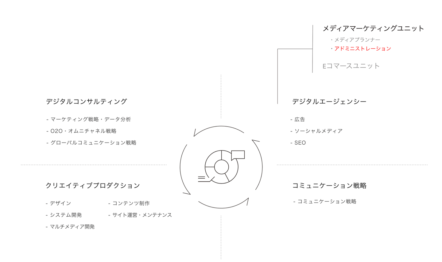 ロゾパンサンの事業の一つ「マーケティング支援事業」の中でデジタルエージェンシーとしての役割を担う、メディアマーケティングユニット。その中でも広告配信におけるサポート業務を行い、チームパフォーマンスを最大化させることでお客様の課題解決に貢献している「アドミニストレーション」の仕事について徹底解説!※以下「アドミ」に略称