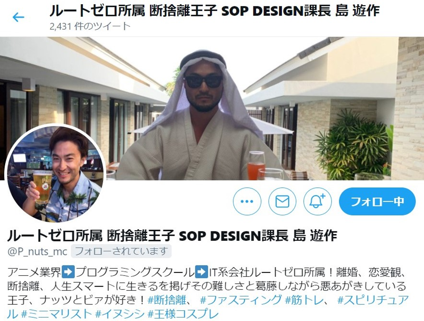 ルートゼロ所属 断捨離王子 SOP DESIGN課長 島 遊作さん (@P_nuts_mc) / Twitter