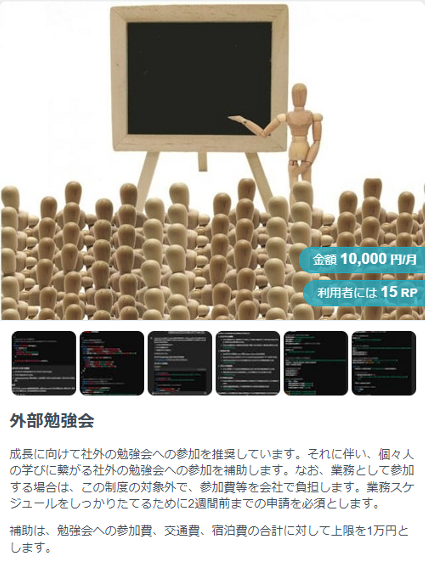 本来は講習やセミナーに参加した際の手当としての制度ですが例外として外部のシステムやサービスを使って学習をした場合にも手当をいただけます。