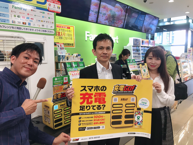 その12:50から約5分間、充電GO!事業部長の石川と沖縄ファミリーマートの比嘉部長が登場。“いつでも充電、どこでも充電”をコンセプトにしたモバイルバッテリーレンタルサービス「充電GO!」について、生放送でじっくりとお話しさせていただきました!