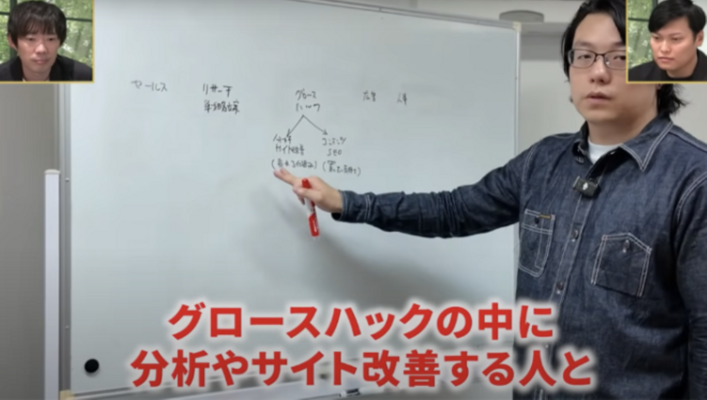 当社の業種は、「セールス」「リサーチ」「グロースハック」「広告」「人事」に分かれています。