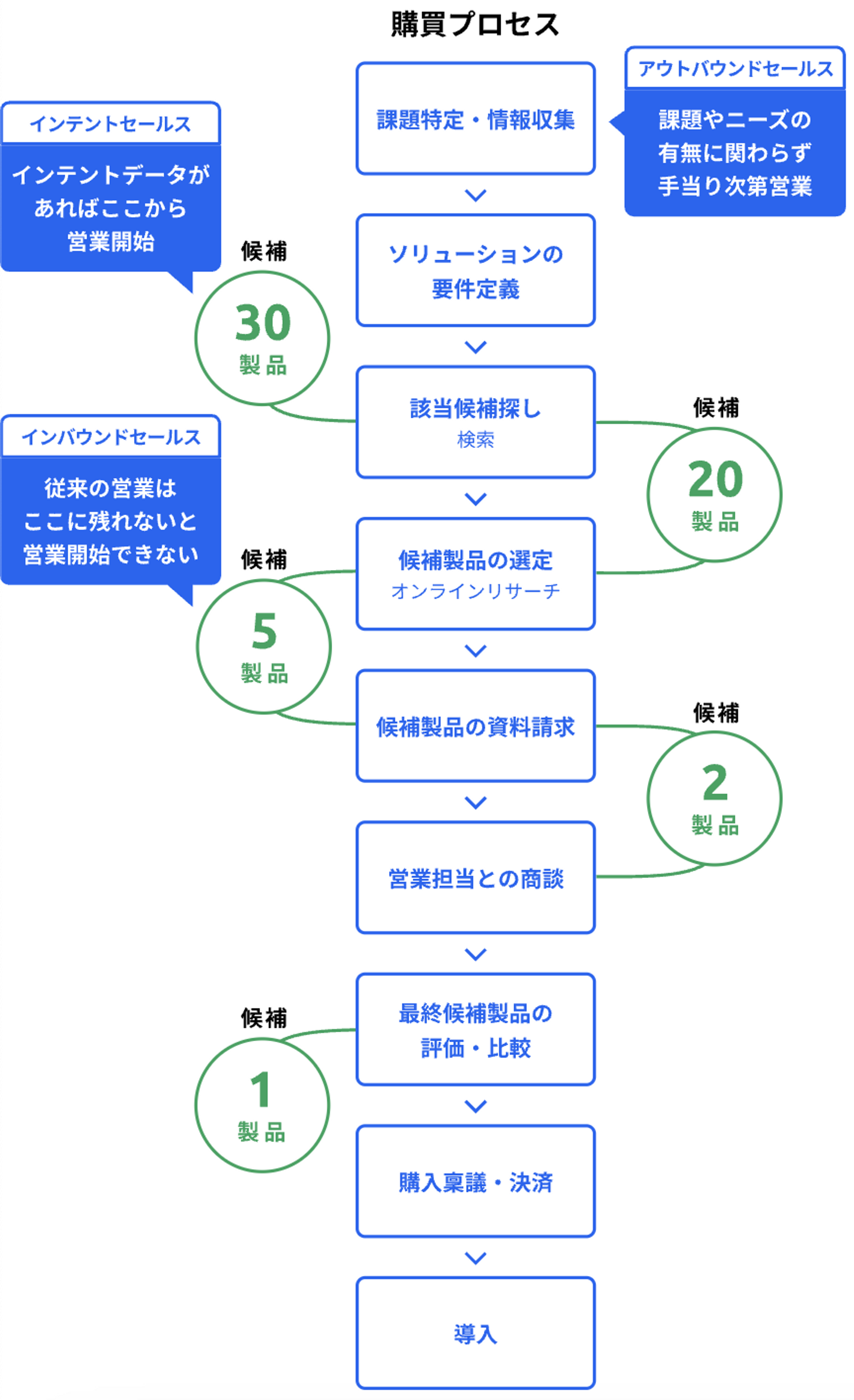 上記の3つの課題を解決するのが、「インテントセールス」と呼ばれる新しい営業手法。