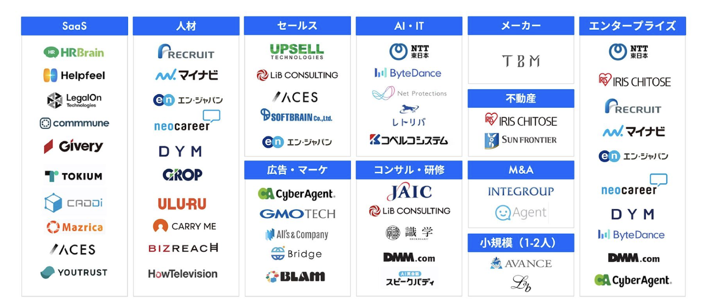 大手企業をはじめ、急成長スタートアップ企業まで幅広い企業がSales Markerを活用し成果を上げています。