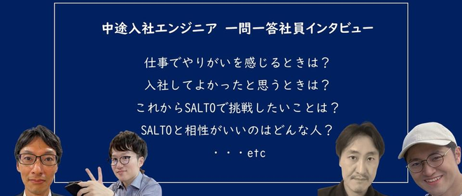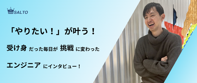 SALTOでは、「成長」と「挑戦」を何よりも大切にしています。失敗しても大丈夫。挑戦することに価値がある。ご自身のスキルアップやキャリアアップに向けて能動的に行動できる方を全面的にバックアップします。