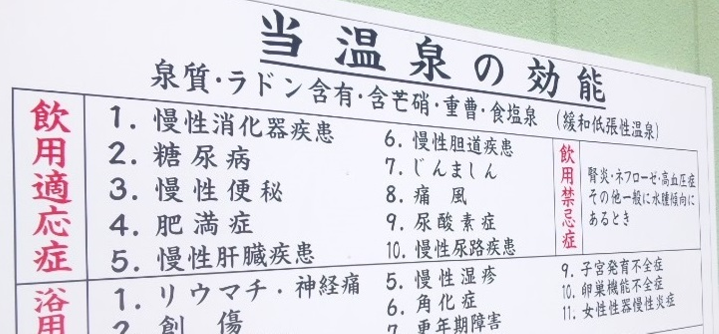 松村:はい。一方で、日本の温泉施設でも、効果・効能が掲示されています。