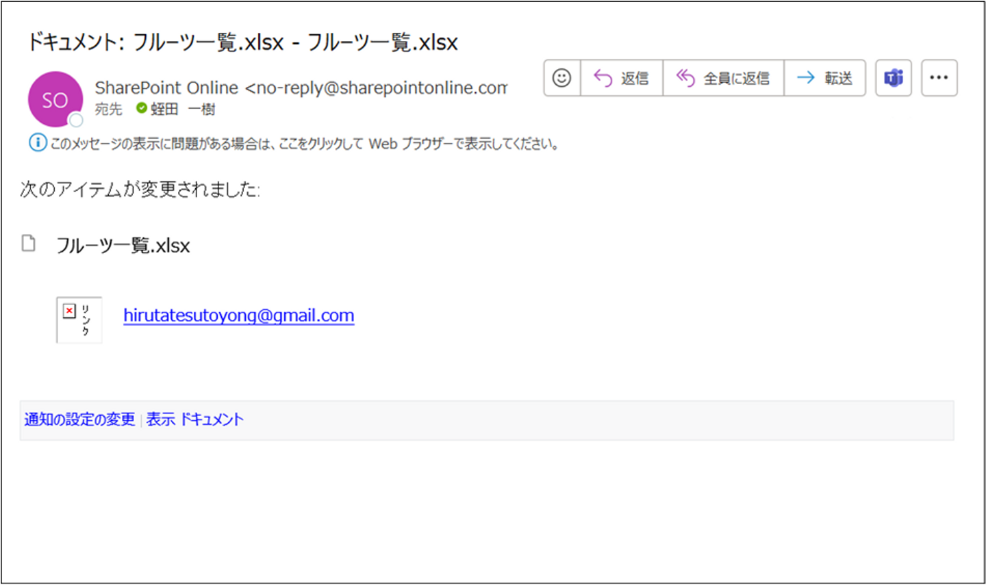 実際に、テスト用アカウントで変更をしたら、以下の通り通知が来ました。