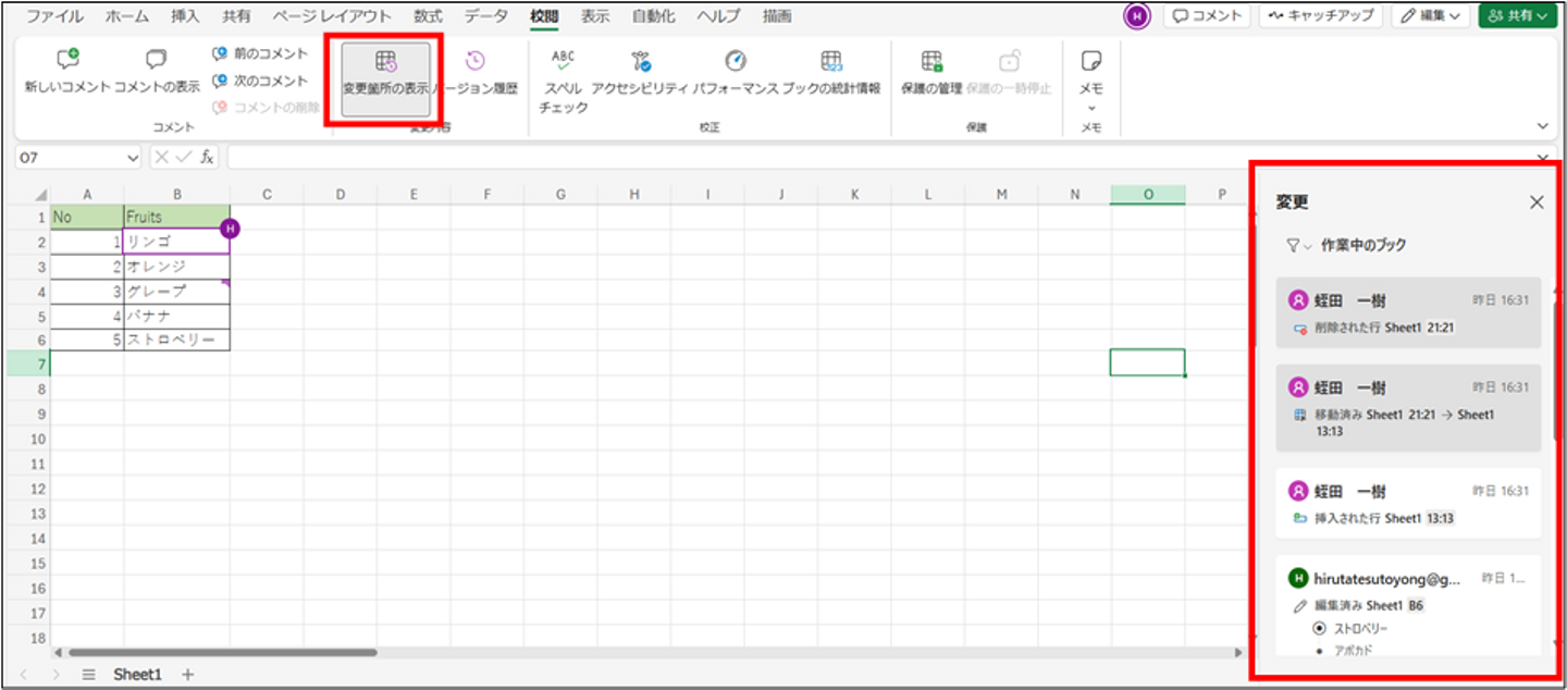変更箇所を確認するのは、「変更箇所の表示」から。