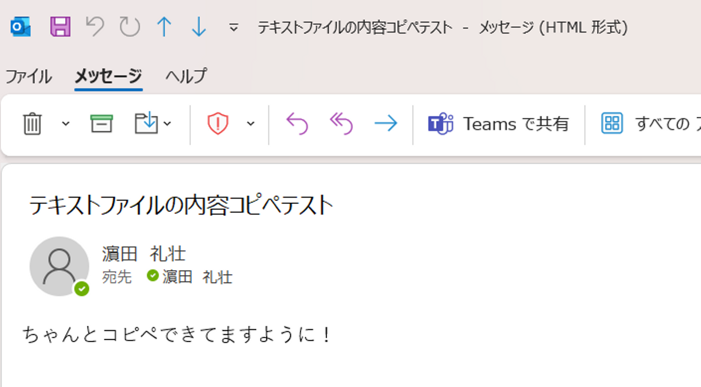 「テキスト内の文章をコピペしてメールの本文に貼り付け、そのままメール送信」を行います。