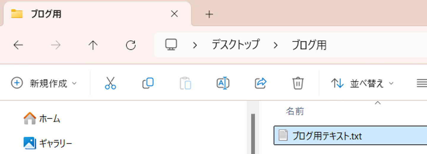 事前準備として下記パスにテキストファイルを1つ配置しましたので、こちらを基に作成していきます!