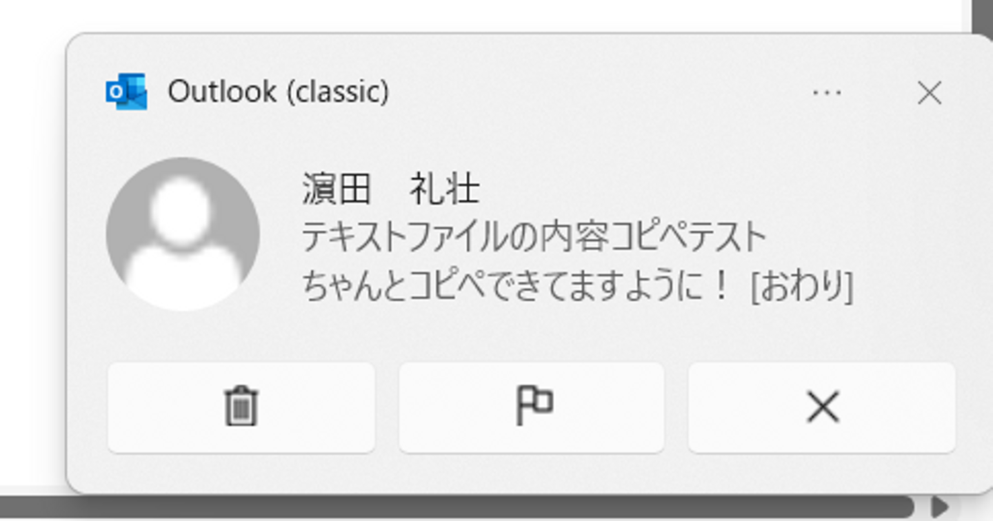 そしてメール受信のポップアップが表示されて無事にメールが送信されていることが確認できました!