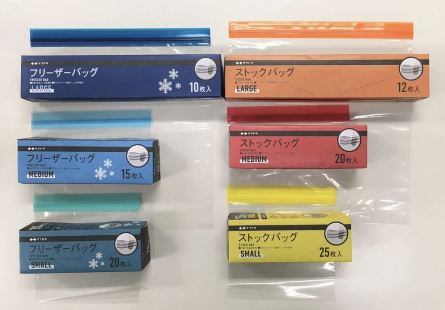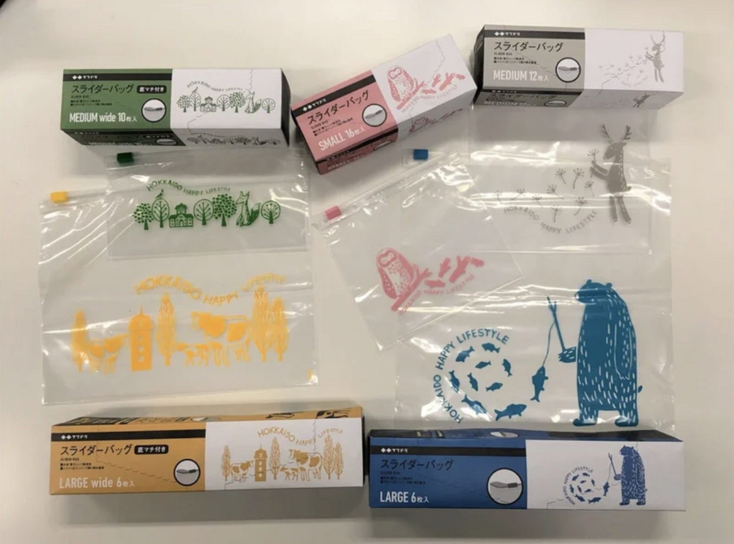 通常のストック・フリーザーバッグの外に、スライダータイプにはかわいいイラストを入れています。