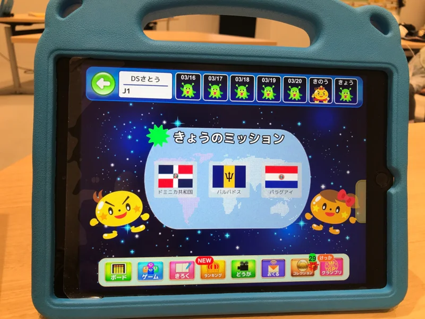 国旗を集める仕掛けが、結果として計算の課題に取り組み、成果を披露できるようになっていました。