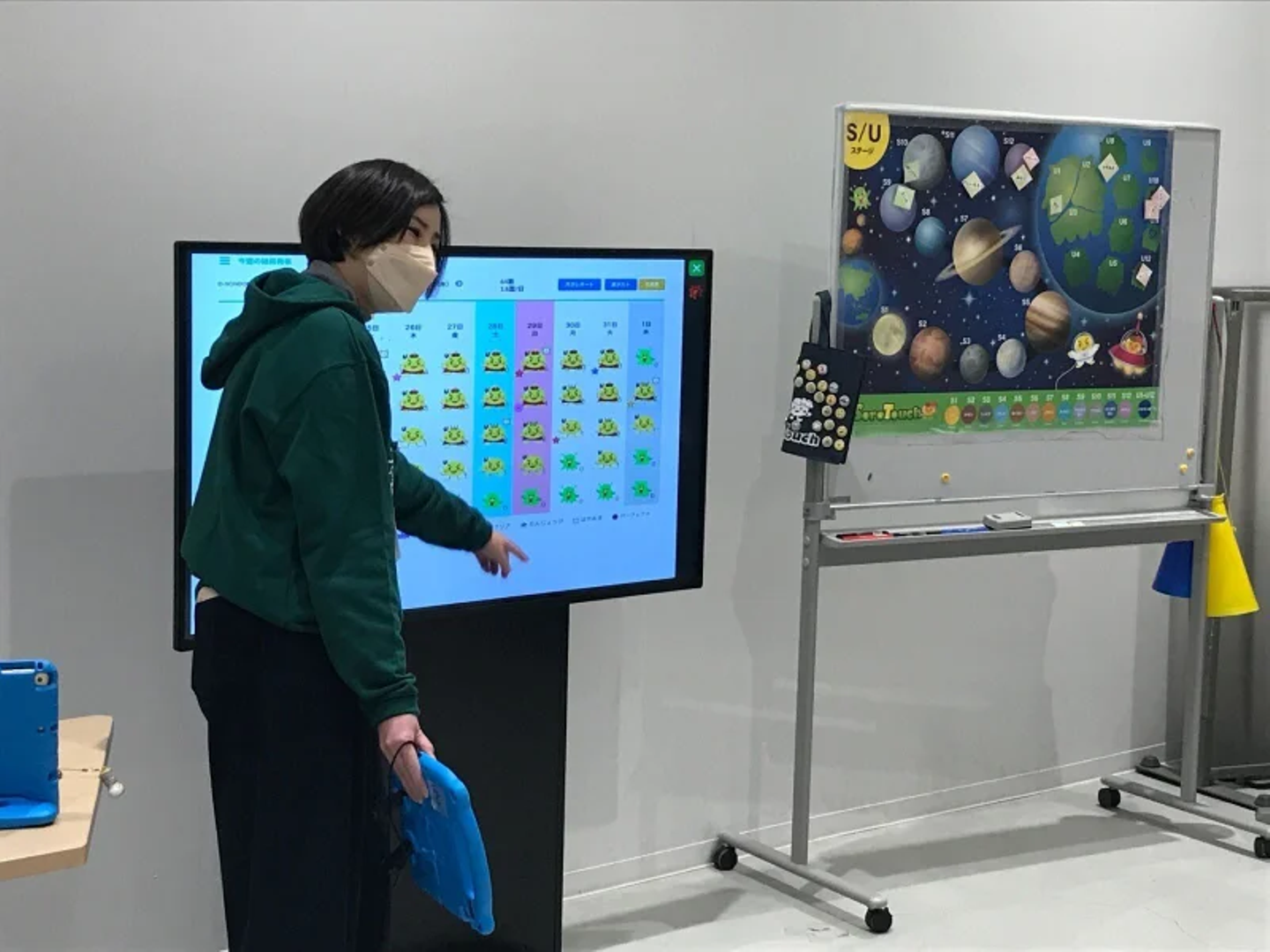 それぞれの習得度合いによって、使用しているiPadの画面には別々の問題が表示されますが、問題が共通でなくても通信をしてみんなで学習を楽しめるのは、端末を使った授業ならではです。また、日々の取り組みや過去のデータがすべてiPad内で管理され、可視化されているのも毎日の勉強が習慣づく1つの要因になっていると感じました!