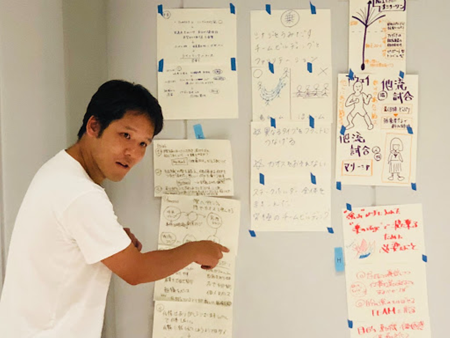 私がStory Design houseに顔を出した初日に嬉しかったのが、あふれそうな本棚でした。ビジネス書や雑誌だけではなく、『犬であるのはどういうことか』や『ダンテの遺言』といった科学や文化に関する本も多く置かれています。Slackには読書専用のチャンネルまである、本が大好きな人が多い職場です。当然ですが社員の皆さんの読書ジャンルも幅広く、思考回路や物事の伝え方も違います。ABDのようなワークショップによって、一冊の本をリアルタイムで共有できるので、そういった多様性を引き出すことや、読書体験を広げることができます。お互いの考え方に触れる場を作る狙いで、今回ABDが開催されました。