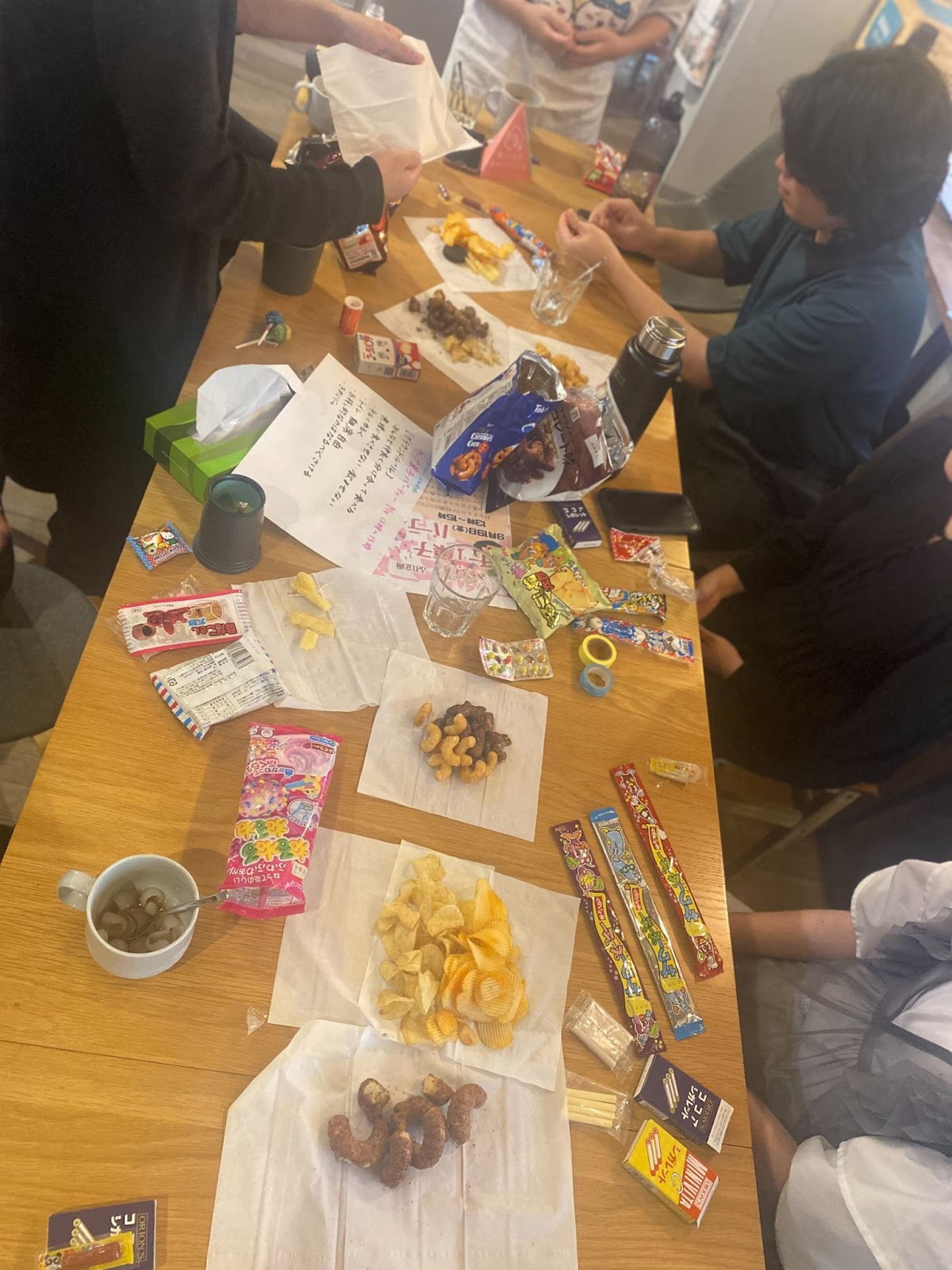 総額200円以内のお菓子を持ち寄り、みんなでテーブルを囲んでシェアしながら楽しみました!「これ懐かしい!」「子どものころよく食べたよね」など、様々な会話が飛び交っていました。