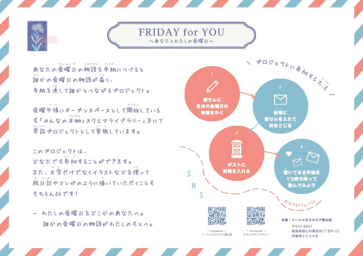 あなたの金曜日の物語や出来事を手紙に綴ると誰かに届く。