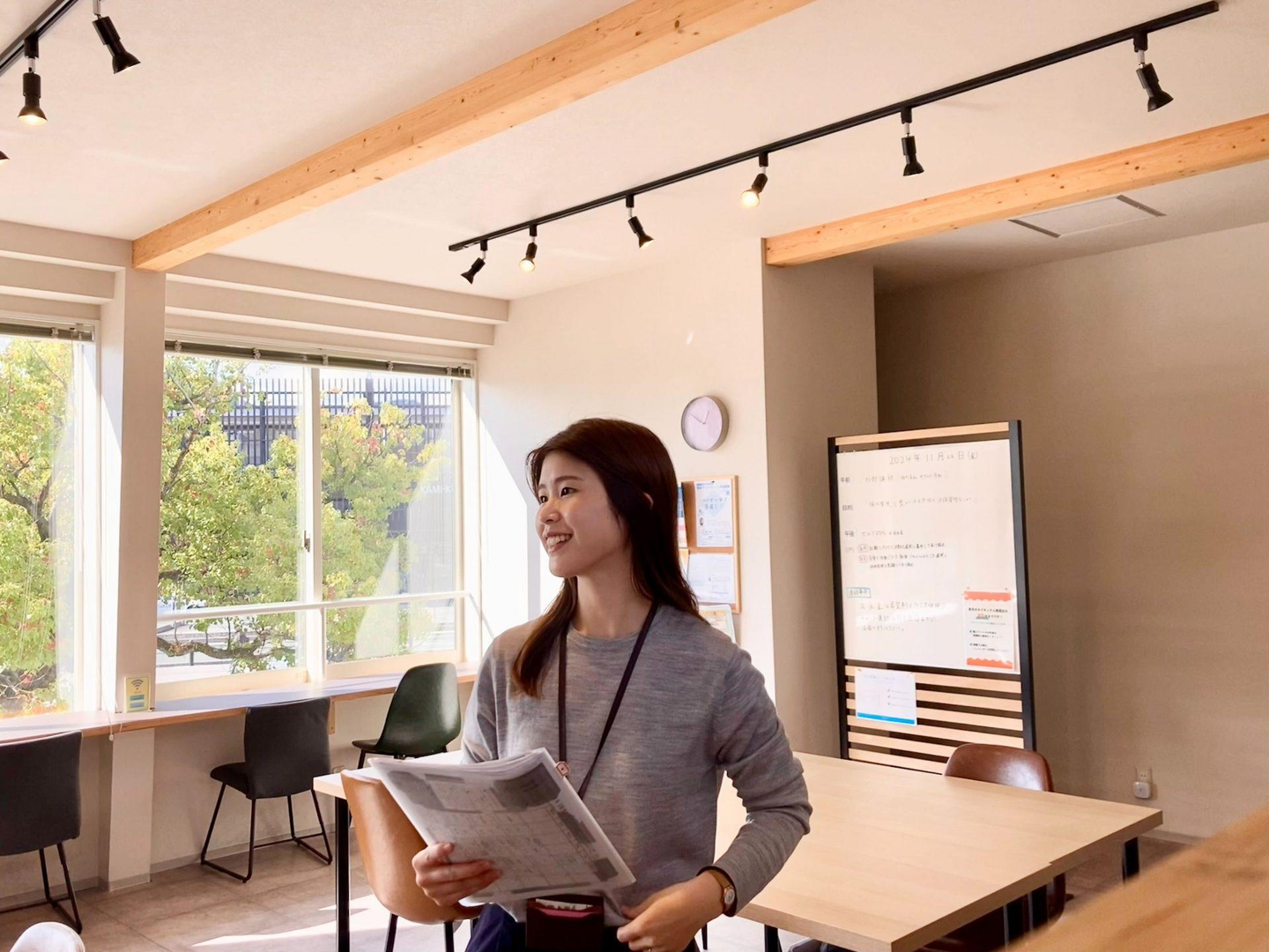 今まで障害福祉の分野では探してなかったのですが、目指している社会の考え方や価値観に共感できましたし、職場も家から近く、現場の雰囲気も開放的でオシャレでとても好印象を受けました。