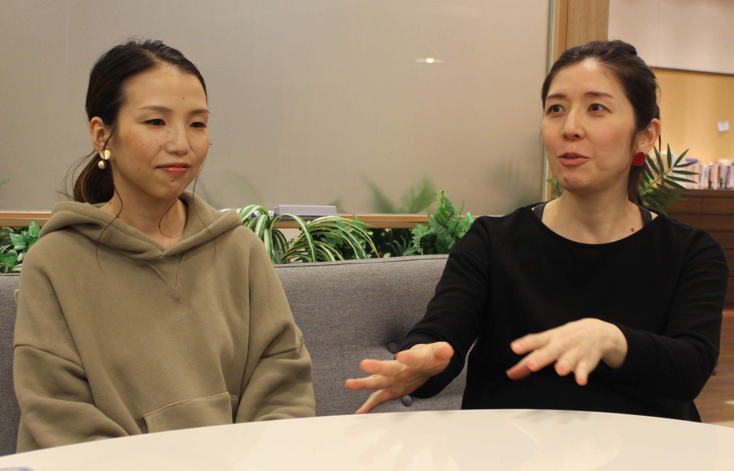 松本 綾香(写真左) : x:eeeのデザイナーとして、主にプロダクトの要件定義を担当。