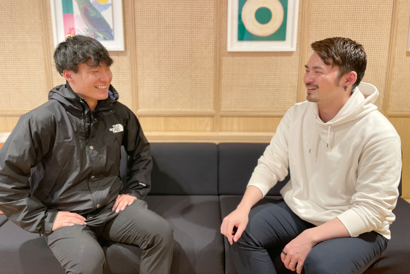 ▲フィリピン・セブ島への出発前のMoriwaki(左)と、エールを贈るHirai(右)