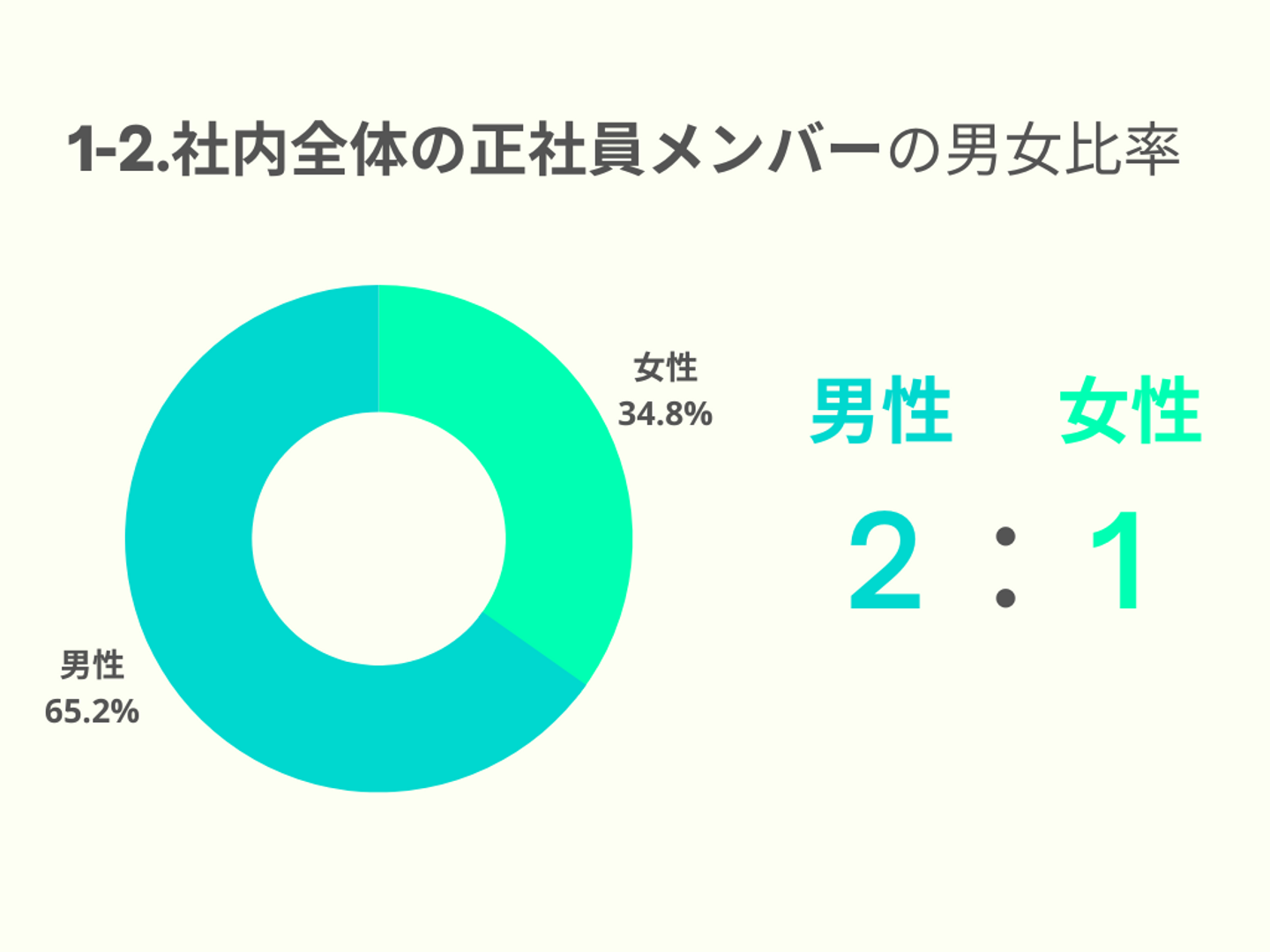 1-2.全社内の正社員・役員のみの男女比と人数