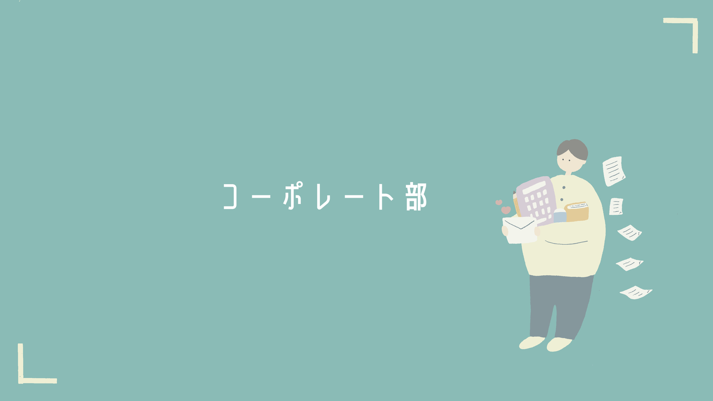 企業基盤のサポートをする「コーポレート部」。ガバナンスや情報セキュリティの構築、DXによる生産性の向上、最小リソースで最大の成果を発揮できるような内部統制、コスト削減など会社をより良くするための経営資源の管理・活用が大きな役割です。グループは主に4つ。