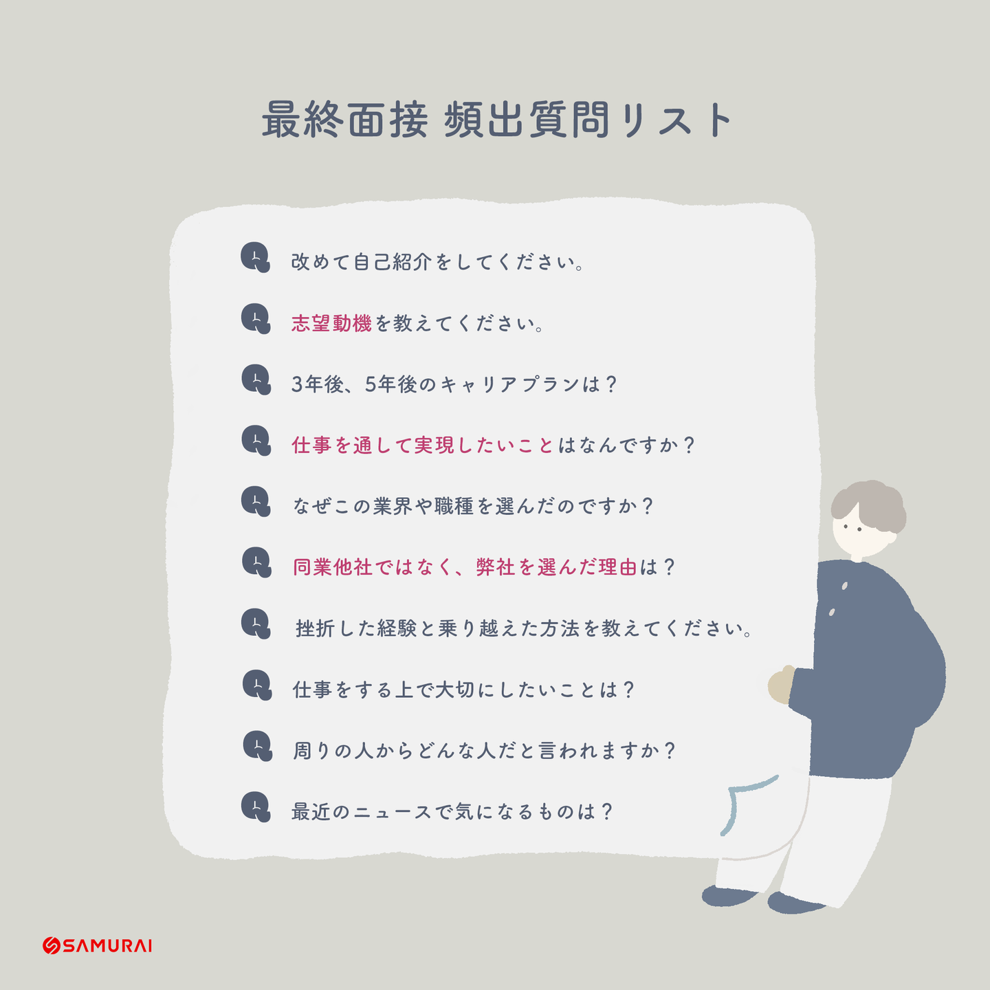 たとえ言葉に詰まったとしても、「入社したい」気持ちを真摯に伝えれば、きっと思いは伝わります。応募先の企業に対する熱意を絶やさず、最終関門突破に向けて“自分なり”の全力を発揮してみてください。皆さんに“良いお返事”が来ることを願っています!