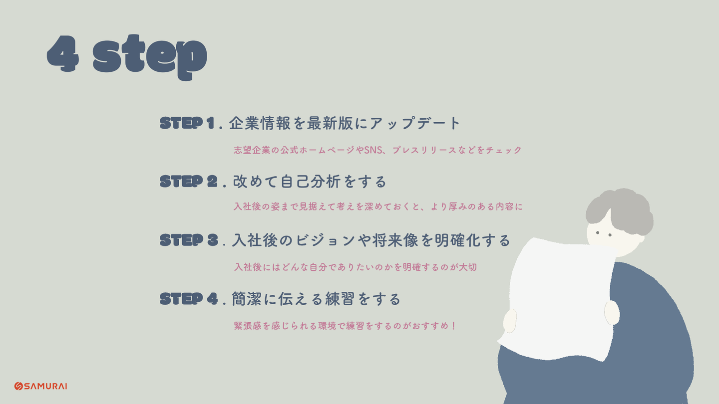 最終面接の対策は以下の4ステップ!手軽にできる方法なので、ぜひ活用してみてください。